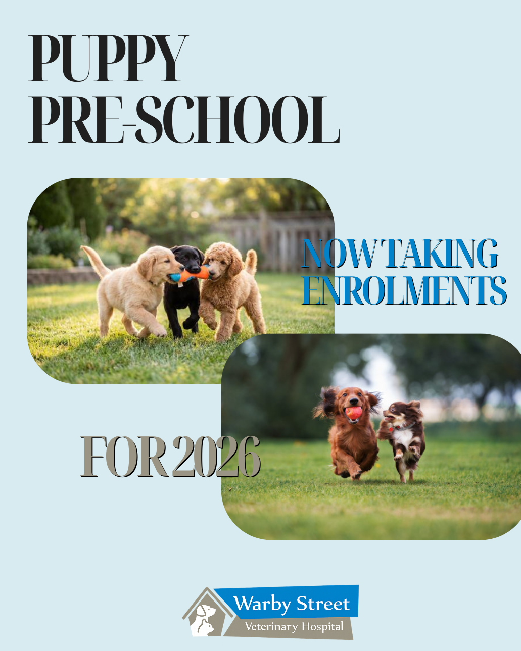 Held at Warby Street Veterinary Hospital, sessions are designed to be practical, informative, and enjoyable for both puppies and their owners.